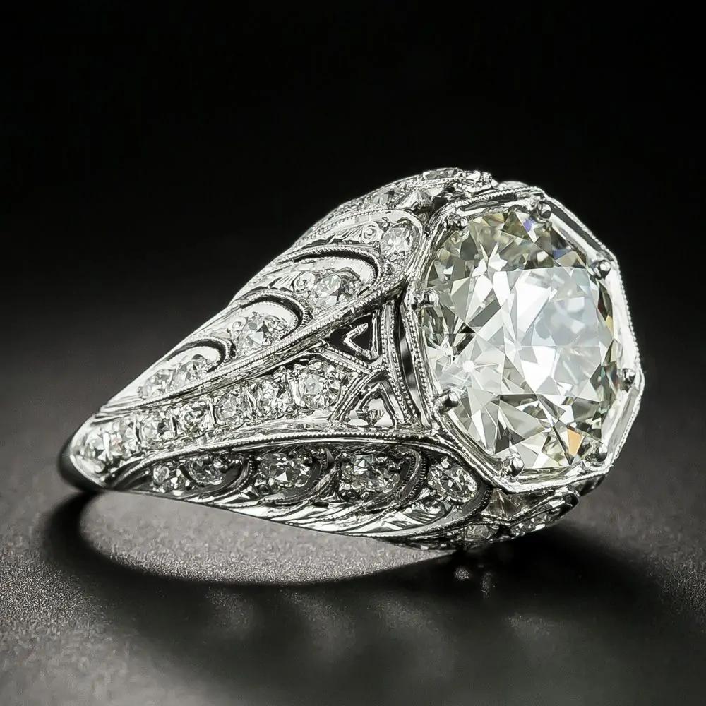 Art Deco Majesty: European-Cut Diamond Engagement Ring